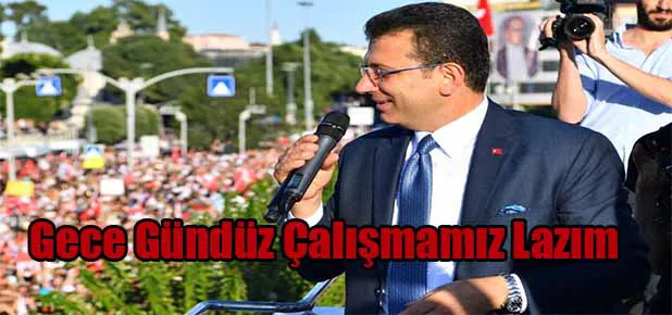 İstanbul Büyükşehir Belediye (İBB) Başkanı Ekrem İmamoğlu, mazbatasını ve mührünü teslim aldıktan sonra, Saraçhane'de mahşeri bir kalabalığa konuştu. Seçim otobüsünün üzerinden yüzbinlerce kişiye konuşan İmamoğlu, şunları söyledi: