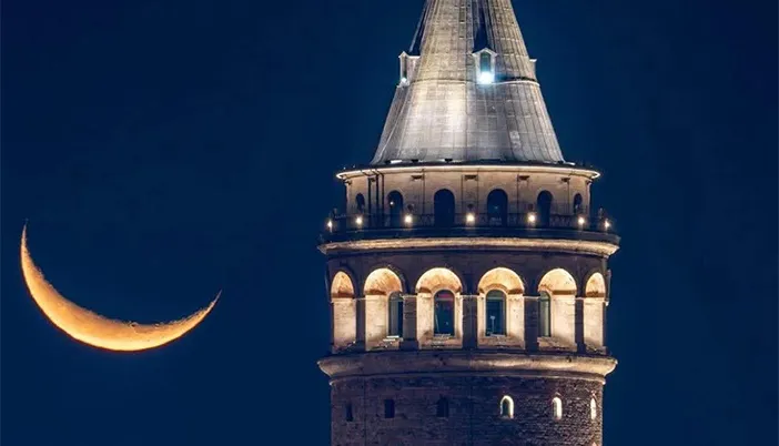 İstanbul gökyüzü dün akşam eşsiz bir manzaraya ev sahipliği yaptı. Hilalin konumu ile Galata Kulesi’nin silüeti aynı karede birleşerek ortaya görülmeye değer bir görüntü çıktı.