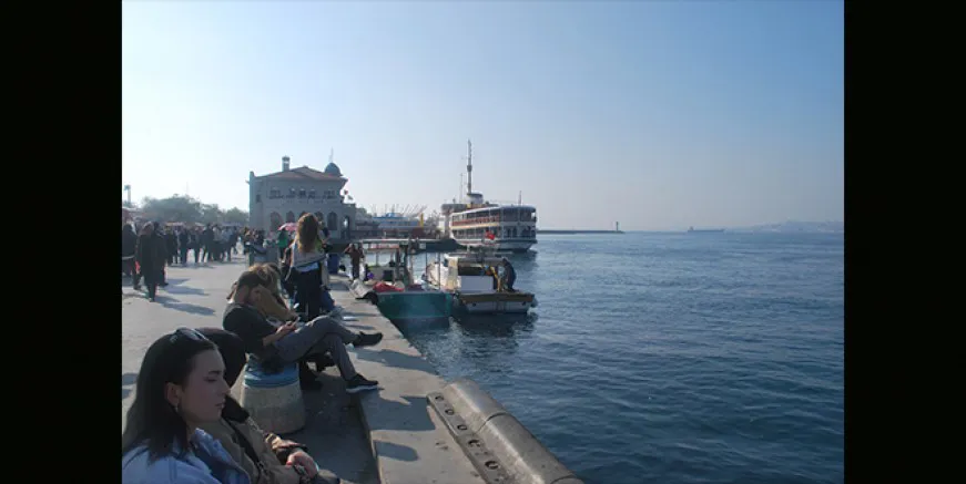 Vatandaşlar güzel bir cumartesi günü Kadıköy sahiline akın ederken asırlık şehrin harika görseli arasında tatil gününü değerlendiriyorlar.