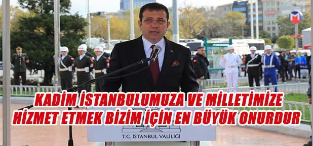 İstanbul'un düşman işgalinden kurtuluşunun 96’ncı yıldönümü dolayısıyla Taksim Cumhuriyet Anıtı'nın önünde tören düzenlendi. Anıta çelenk koyan İmamoğlu, Anıt Defterine, “Milletin başkomutanı olarak bize kazandırdığınız bu ‘kurtuluş’, Fatih Sultan Mehmet’in o muazzam fethine ve kutsal emanetine sonsuza dek sahip çıkmanın da adıdır. Bizler bugün, aldığımız emanetin büyüklüğünün bilinci içinde. Çağdaş uygarlığın üzerine çıkma hedefiniz doğrultusunda, azim ve kararlılıkla çalışıyoruz” diye yazdı.