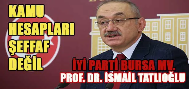 TBMM’de düzenlediği basın toplantısında kamu hesaplarının şeffaf olmadığını ve takip edilemediğini söyleyen İYİ Parti Bursa Milletvekili Prof. Dr. İsmail Tatlıoğlu; “Daha önce örtülü ödenek diye bahsederdik; bugün artık bütün kamunun örtündüğünü görüyoruz. Kamu hesapları, bundan önceki ve olması gereken şekilde bir şeffaflığa sahip değil ve takip edilemiyor, ölçülemiyor. Ölçü olarak verilenlerin de sağlıklı olmadığını belirtmek gerekir, bu konuda çok ciddi bir makyajlama olduğunu” ifade etti.