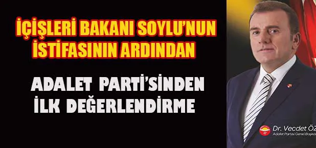 İçişleri Bakanı Süleyman Soylu'nun isifasına Adalet Partisinden ilk değerlendirme. Genel Başkan Prof. Dr. Vecdet Öz'ün değerlendirmeleri şöyle: