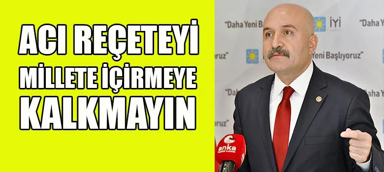 İYİ Parti Ekonomi Politikaları Başkanı Erhan Usta, Genel Merkez’de düzenlediği basın toplantısında, ekonomideki gelişmeleri değerlendirirken, Cumhurbaşkanı Erdoğan’ın grup toplantısındaki konuşmasından bahsederek, sakın ola o acı reçeteyi millete içirtmeye kalkmayın uyarısında bulundu.