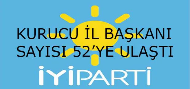 Görevlendirilen 8 kurucu il başkanıyla birlikte bu güne kadar görevlendirilen toplam İYİ Parti kurucu il başkanı sayısı 52’ye ulaştı.