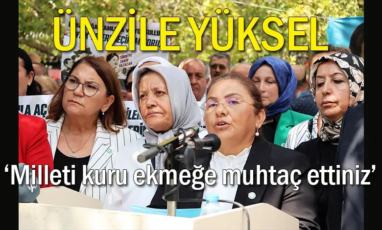 İYİ Parti Kadın Politikaları Başkanı Ünzile Yüksel, uzun süredir devam eden zam yağmuruna yönelik “Milleti kuru ekmeğe muhtaç bıraktınız. Çalışanı da emekliyi de derin yoksullukla karşı karşıya getirdiniz” dedi.