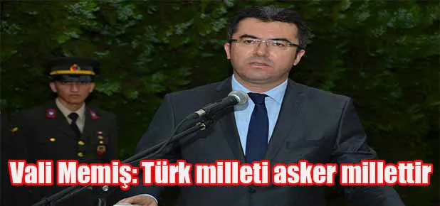 Törende, İl Jandarma Alay Komutanı Albay Cezayir Danışan’ın günün anlam ve önemiyle ilgili gerçekleştirdiği konuşmanın ardından yaptığı konuşmada, Türk milletinin asker bir millet olduğunu kaydeden Vali Memiş, “Her millet asker millet olarak tanımlanmaz. İngilizlere, Ruslara, Fransızlara asker millet denilmez, hepsinin başka özellikleri var. Ama Türk milletine asker millet denir. Bizler çocuklarımızı büyütürüz, askerlik çağına geldiğinde de kınalar yakıp, terörle mücadelede verilen onca şehide rağmen keyifle, seve seve, gururla askere göndeririz. Hatta evlilik çağına gelen gençlerimizin askerliğini yapmış olması evlilik için bir ön şart gibidir.” dedi.