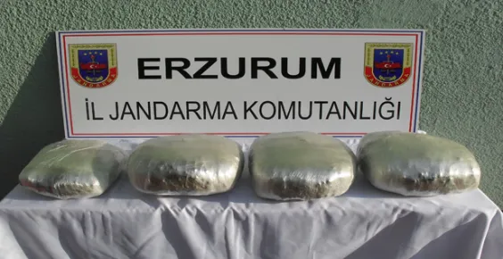 Erzurum İl Jandarma Komutanlığı Kaçakçılık ve Organize Suçlar Şube Müdürlüğünce yapılan operasyonda 20 kg. yakın esrar ele geçirildi.
