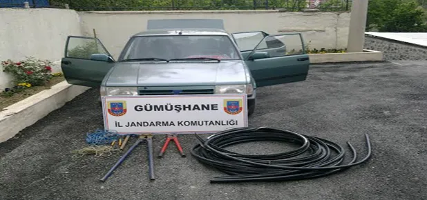 Gümüşhane’nin Torul İlçesi Cebeli Köyünde telefon kablolarını çalan hırsızlık şebekesi Jandarmanın takibi sonucu yakalandı