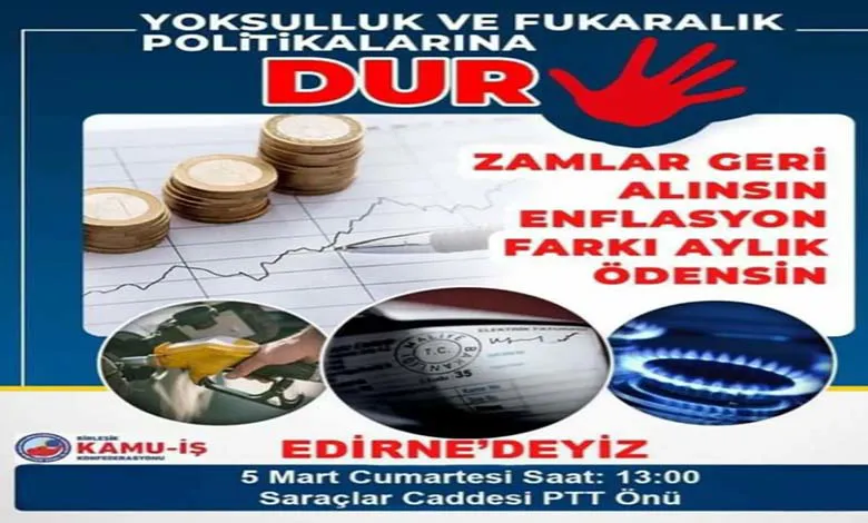 Birleşik Kamu-İş konfederasyonu olarak belirtiyoruz ki; geçmiş enflasyon oranlarına göre verilen zamlar, kamu çalışanları ve kamu emeklilerinin geçim sıkıntısı yaşamasına sebep olmaktadır. Enflasyon farkları aylık olarak maaşlara yansıtılmalı ve kamu emekçilerinin hakları korunmalıdır.