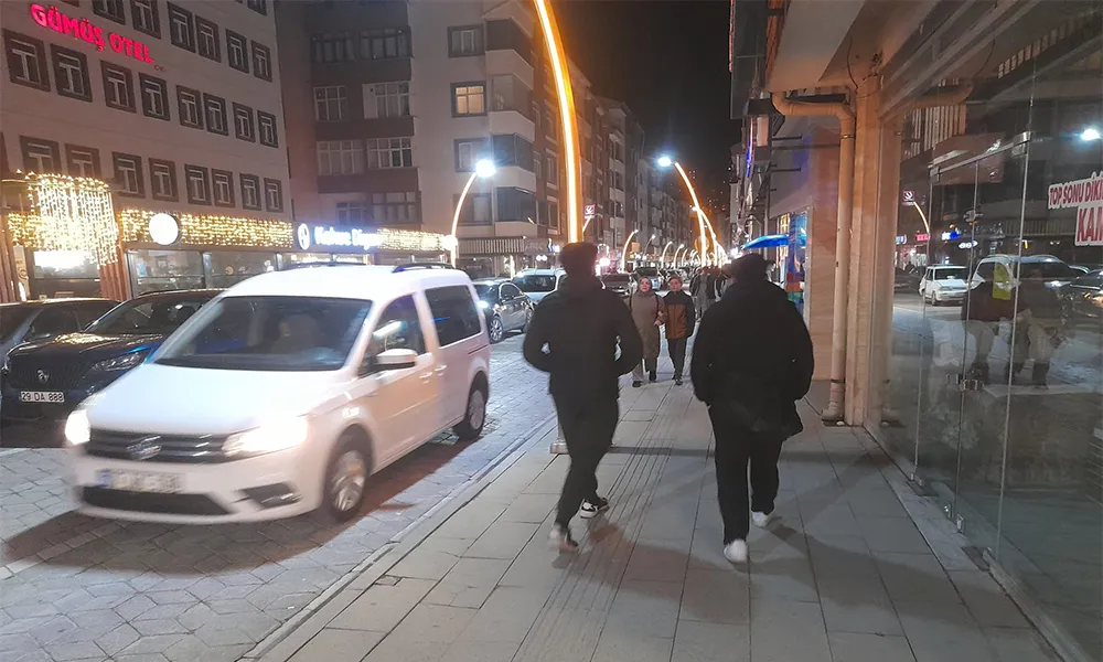 Cumhuriyet Caddesi'ndeki araç trafiği gecenin ilerleyen saatlerinde yoğunlaşırken, yayalar yürümekte zorluk çekti. 2025 yılı sonu ve 2026 yılı başında zorlu bir kış mevsimi atlatan Gümüşhane, bayramın hareketliliği ile şenlendi.