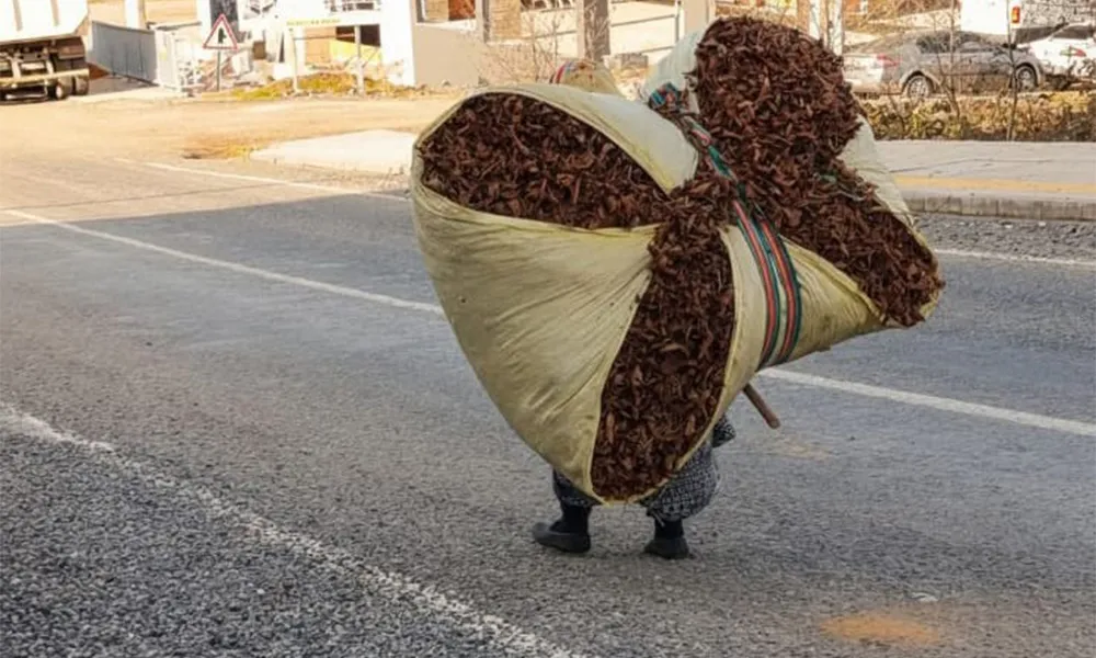 “Gazel” olarak adlandırılan yapraklarla doldurulmuş kocaman tenteyi sırtlayan Karadenizli kadın, büyükbaş hayvanları için kış hazırlığı yapıyor. Bahçelerden özenle süpürülerek bir araya getirilen yapraklar, ahırlarda hayvanlara altlık olarak kullanılıyor. Ancak bu hazırlık süreci, çoğu zaman kadınların sırtında taşınan ağır yüklerle tamamlanıyor.
