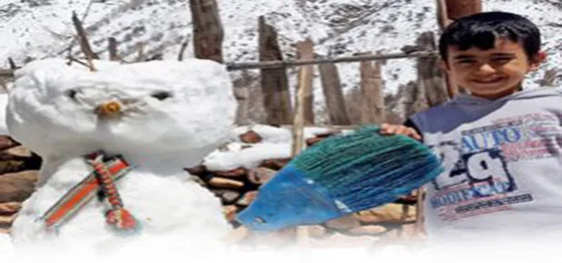 'nin yüksek rakımlı köylerinde hafta içinde gerçekleşen yoğun kar yağışının ardından çocuklar, Nisan ayının son günlerinde kardan adam yaptı.