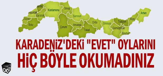 Karadeniz bölgesi başkanlık referandumunda yüzde 62,58 ile en yüksek ‘evet’ oyunun çıktığı bölge. Ancak, 1 Kasım 2015 seçimleriyle karşılaştırıldığında bir düşüş görülüyor. ‘Evet’in iki partisi AKP ve MHP bu bölgede 1 Kasım’da toplam yüzde 74’lük bir oy oranı (AKP yüzde 61,4 – MHP yüzde 12,6) elde etmişti. Bu iki tablo karşılaştırıldığında yüzde 11,42’lik bir düşüşün yaşandığı görülüyor.