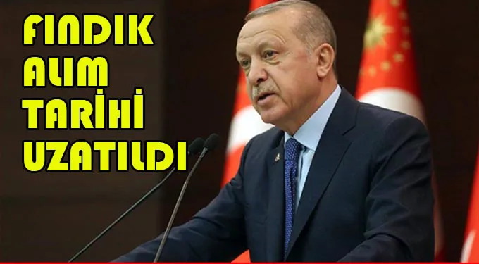 Fındık alım tarihi uzatıldı. AK Parti Giresun Milletvekili Cemal Öztürk, karara yönelik kararnamenin Cumhurbaşkanı Recep Tayyip Erdoğan tarafından imzalandığını bildirdi.