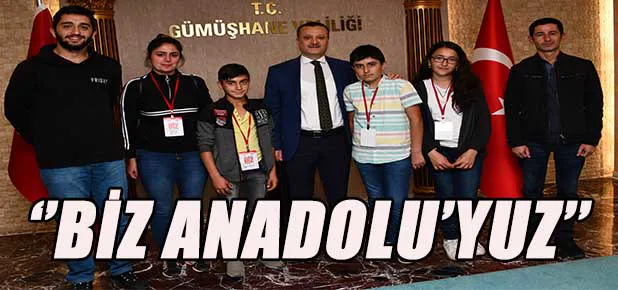 Cumhurbaşkanı Recep Tayyip Erdoğan’ın eşi Emine Erdoğan’ın himayelerinde İçişleri Bakanlığı ile Gençlik ve Spor Bakanlığı tarafından yürütülen "Biz Anadolu’yuz" projesi kapsamında Kars’tan Gümüşhane’ye gelen öğretmen ve öğrencileri Vali Kamuran Taşbilek misafir etti.