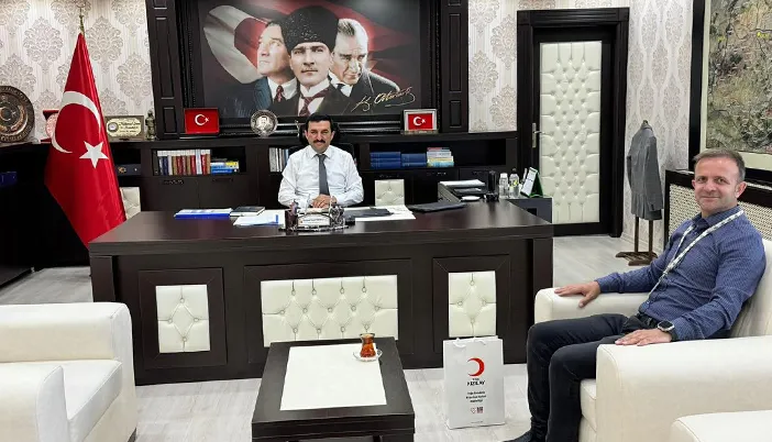Kelkit Kaymakamı Mahmut Sami Yılmaz, Kızılay Kan Bağış Merkezi Kazanım Uzmanı Adem Bal’ı makamında ağırladı. İlçede yapılan bağış çalışmaları hakkında bilgi alan Kaymakam Yılmaz, kan bağışının hayati önem taşıdığını vurguladı.
