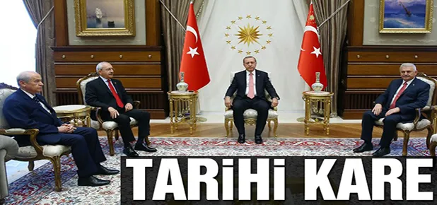 Başbakan Binali Yıldırım, CHP Lideri Kemal Kılıçdaroğlu ve MHP Lideri Devlet Bahçeli, Erdoğan’ın daveti üzerine Ak Saray’da. Muhalefet liderleri ilk Kılıçdaroğlu ve Bahçeli ilk kez Ak Saray’da bulunuyor. Saray'a ilk gelen isim Başbakan Binali Yıldırım oldu. Yıldırım'ın ardından CHP Genel Başkanı Kemal Kılıçdaroğlu ve MHP Genel başkanı Devlet Bahçeli Cumhurbaşkanlığı Sarayı’na art arda giriş yaptığı öğrenildi.