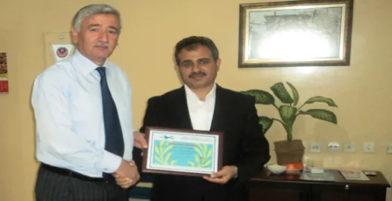 Güce Milli Eğitim Müdürlüğüne atanan İl Milli Eğitim Şube Müdürü Altan Ekmen'e Kent Konseyi teşekkür plaketi verdi