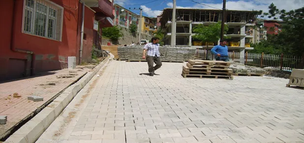 Gümüşhane Belediyesi Fen İşleri Müdürlüğü tarafından Hasanbey Mahallesi Kıbrıs Çarşısı Topal Yolu başlangıcında başlatılan parke çalışması devam ediyor. Belediye Fen İşleri Müdürü Sinem Açık çalışmanın en kısa sürede tamamlanması için yoğun bir çalışma içinde olduklarını söyledi.