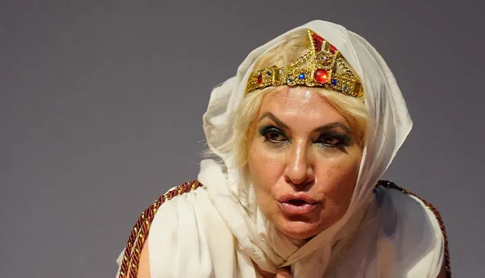Tek kişilik performansıyla Meltem Pul, antik çağın efsanevi kraliçesi Kleopatra’yı modern dünyanın aynasında yeniden canlandırıyor.
