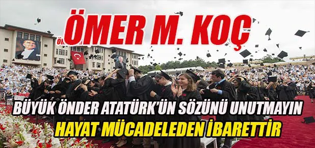 Ömer M. Koç konuşmasında, gençleri yaptıkları her işte, Atatürk’ün çizdiği çağdaş uygarlık yolunda demokrasiden ödün vermeden ilerleyen, Cumhuriyet’in temel ilke ve inkılâplarına gönülden bağlı, Türkiye’yi çağdaş medeniyetler seviyesine getirmek için var gücüyle çalışan, sorumluluk ve görevlerinin bilincinde yetişmiş insanlar olarak görmeyi beklediklerini söyledi.