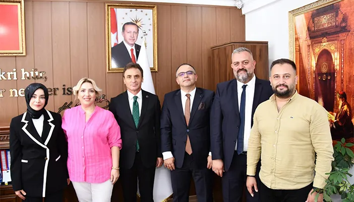 Dernek yönetimi ziyaretleri kapsamında İl Milli Eğitim Müdürü Şener Doğan’a plaket takdim ederken, Sayın Doğan da öğrenciler için sağlanan bu anlamlı katkıdan ötürü dernek yönetimine teşekkür ederek plaket sundu.