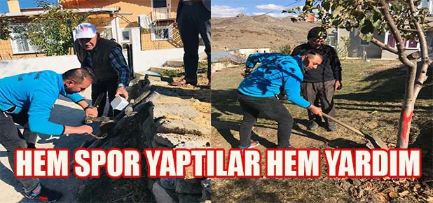 Köy sakinlerinin kış hazırlığı yaptığını gören Spor Şube Müdürü Selahattin Taş ve Antrenörler köy sakinlerinin işlerine yardım ettiler