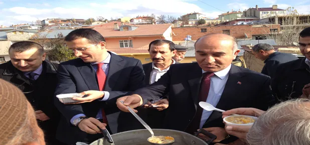 İlçe esnafı ile belediyenin ortaklaşa destek verdiği aşure günü etkinliğinde; İlçe Kaymakamı Arif Karaman, Belediye Başkanı Şerif Aygün ve İlçe Müftüsü Hayrullah Balta tarafından halka aşure dağıtıldı.