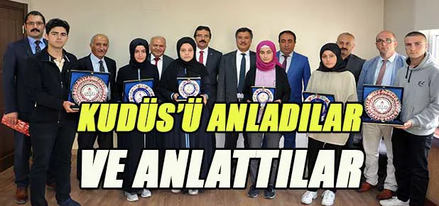 "Kudüs'e Mektup” ve “Kudüs Konulu Maket” yarışmalarında derece alan öğrenciler plaket ve çeşitli hediyelerle ödüllendirilirken, ödülleri İl Milli Eğitim Müdürü Seydi Doğan, Müdür Yardımcıları Mesut Olgun ve İbrahim Taş tarafından verildi.