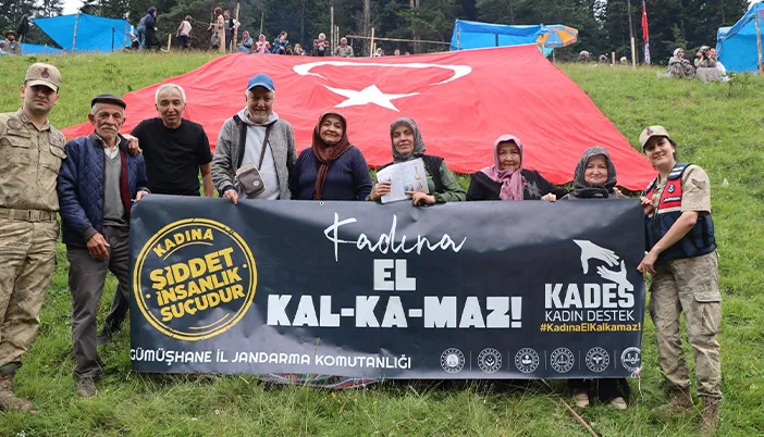 Gümüşhane’nin Kürtün ilçesine bağlı Harmancık Yaylası’nda düzenlenen şenlikte, kadına yönelik şiddetle mücadele kapsamında farkındalık etkinliği gerçekleştirildi.