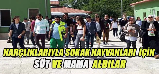Akçaabatlı lise öğrencileri harçlıklarını biriktirip sokak hayvanları için mama ve süt aldılar.