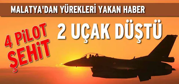 Malatya'da iki askeri uçak bilinmeyen bir nedenle düştü. Uçaklardaki 4 pilot şehit oldu