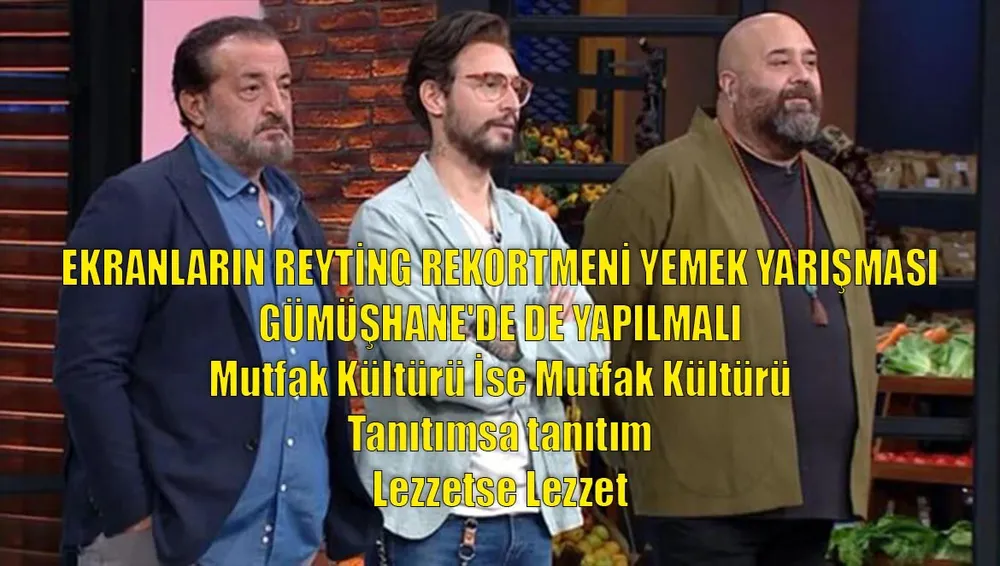 Gümüşhane'de bu çekimlerden bir tanesi olabilir mi? Bilindiği üzere Gümüşhane'de sofra kültürü açısından oldukça zengin bir şehir. Fasulyesinden, zironuna, kuşburnundan marmelatına kadar oldukça bereketli bir menüye sahip Gümüşhane'nin bu özelliği izleyicilerin rağbet gösterdiği yarışma programında neden yayımlanmasın?