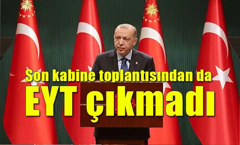 Yılın son kabine toplantısı sonrası AKP’li Cumhurbaşkanı Erdoğan açıklamalarda bulundu. Erdoğan, “Arzumuz EYT’yi yılbaşından önce gündemimizden çıkarmak” dedi. Erdoğan’ın bu sözlerine karşın Meclis bugün tatile girdi.