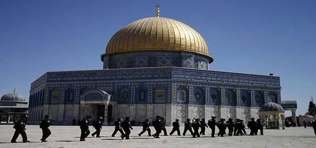 Geçen hafta Mescid-i Aksa'yı 1967'den bu yana ilk kez tamamen kapatan İsrail bugün de Mescid-i Aksa külliyesine ait kubbenin altına kadar girerek mihrabı askerlerine çiğneterek çirkin bir saldırının altına imza atmıştır.