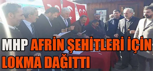 Milliyetçi Hareket Partisi Gümüşhane İl Başkanlığı Afrin’de TSK tarafından yürütülen Zeytindalı Harekatı esnasında şehit düşen kahramanlarımız için lokma dağıttı.