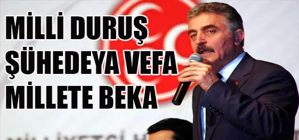 Milliyetçiliğimiz; Türk milletiyle mana, ruh ve muhteva kazanmaktadır. Bunun için gür bir haykırışla diyoruz ki; “Milli Duruş: Şühedaya Vefa, Millete Beka.”