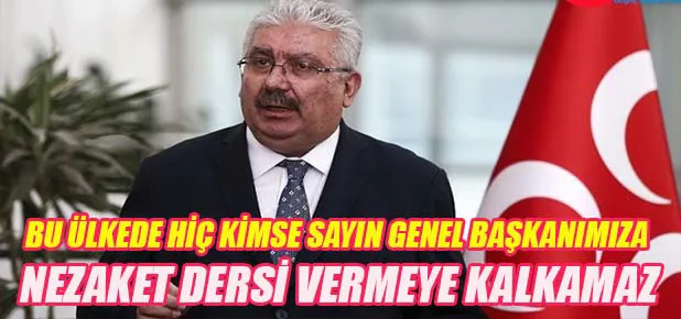 Bu ülkede hiç kimse Sayın Genel Başkanımıza nezaket dersi vermeye kalkamaz. Sayın genel başkanımızın Türkiye Cumhuriyeti Cumhurbaşkanlığı makamına gösterdiği saygı milletimizin malumudur.