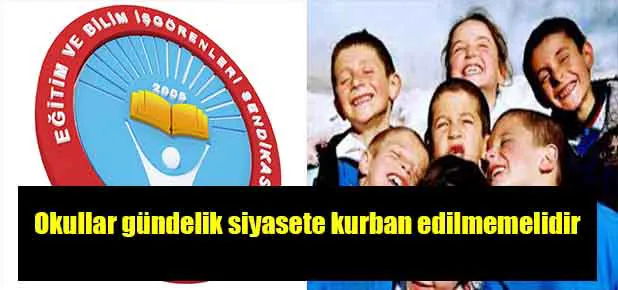 Çocuklarımıza baskıyla dayatılan bilim ve pedagojiden uzak bu tür uygulamalar, onların kişisel ve sosyal gelişimi açısından son derece sakıncalıdır. Eğitim-İş olarak siyasi iktidarı, çocuklarımızı kendi ideolojik hedeflerine ulaşmak için kullanmaktan vazgeçmeye çağırıyor, olayda sorumluluğu bulunanlar hakkında suç duyurusunda bulunacağımızı belirtiyoruz.’