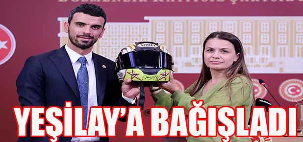 Milli motosikletçi Kenan Sofuoğlu, kaza geçirdiği bir yarışta hayatını kurtaran kaskını 10 Ekim, Çarşamba günü Türkiye Büyük Milet Meclisi’nde yapılan törenle Yeşilay’a bağışladı.