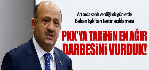 Bakan Işık, Türkiye'nin pek çok terör örgütü ile aynı anda mücadele ettiğine vurgu yaparak, "Hamdolsun, son dönemde alınan yoğun tedbirler ve askerimizin, polisimizin, jandarmamızın, güvenlik korucularımızın çok güçlü koordinasyonu sonucunda terör örgütüne tarihinin en ağır darbesi arka arkaya vuruldu." diye konuştu.
