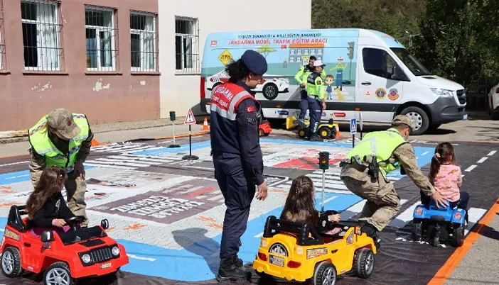 Kürtün ilçesi Vali Gazi Şimşek İlkokulu ve Süme İlkokulu’nda düzenlenen programda, Trabzon İl Jandarma Komutanlığı Trafik Güvenliği Eğitim Kısım Amirliği ve Kürtün İlçe Jandarma Komutanlığı Trafik Jandarması timleri tarafından mobil trafik eğitim aracıyla uygulamalı trafik güvenliği eğitimi verildi.
