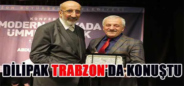 Trabzon Büyükşehir Belediyesi, Birlik Vakfı Trabzon Şubesi ve Milli Türk Talebe Birliği Trabzon Şubesince organize edilen “Modern Dünyada Ümmet Olmak” konulu konferans Trabzon'da gerçekleştirildi. Hamamizade İhsanbey Kültür Merkezinde icra edilen konferansta araştırmacı-yazar Abdurrahman Dilipak katılımcılara seslendi. Konuşmasında önemli açıklamalarda bulunan Dilipak, "Müslümanlar derinlik kazanmak, kendi aralarında istişare etmek, şûra yapmak, yardımlaşmak zorundadır. Daha fazla bilgiye ihtiyacımız var. Kulaktan dolma bilgilerle din ve tarih öğrenilmiyor" dedi.