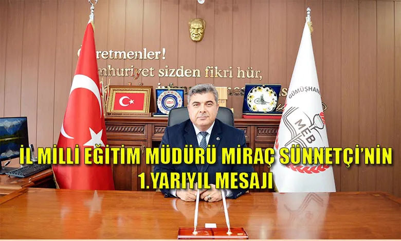 İl Milli Eğitim Müdürü Miraç Sünnetçi 2021 - 2022 Eğitim Öğretim Yılı 1. Dönem Yarıyıl Tatili nedeniyle bir mesaj yayımladı. Sünnetçi, mesajında şunları söyledi: