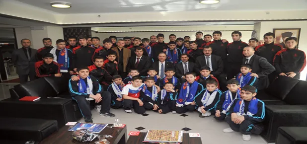 Muş Lalezar Spor Kulübü sporcuları, yöneticileri, teknik heyeti ve İl Voleybol Koordinatöründen oluşan heyet