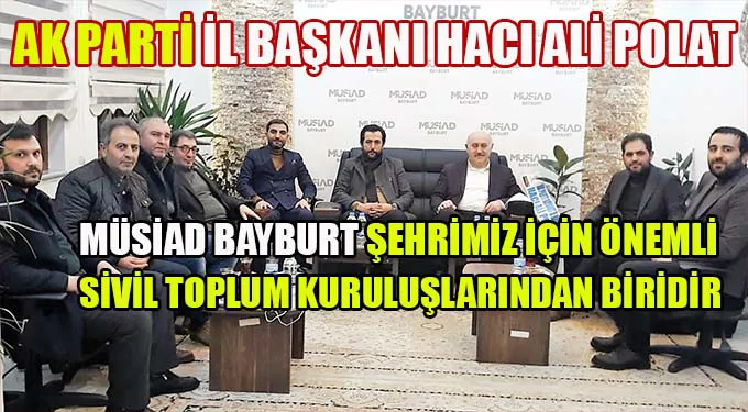 AK Parti İl Başkanı Hacı Ali Polat, “MÜSİAD Bayburt bizim şehrimiz için en önemli sivil toplum kuruluşlarından biridir. Öncelikle MÜSİAD Bayburt Başkanımız Emre Bayrak ve oluşturacağı yeni yönetim kurulu üyelerine yeni görevlerinde başarılar diliyorum.’’ Dedi.