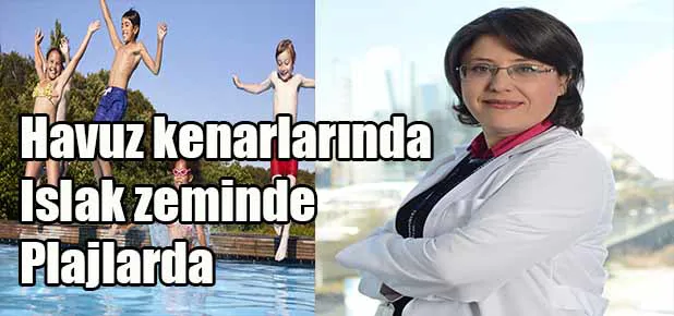 Türk Dermatoloji Derneği Genel Sekreteri Doç. Dr. Emel Erdal Çalıkoğlu Havuz kenarlarındaki ıslak zeminlerde ve plajda yürürken mutlaka terlik giyilmelidir" dedi.