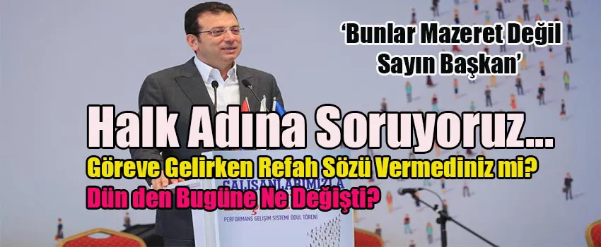 İmamoğlu halkın tepkisini çeken zamma ilişkin şunları söyledi: “Doğru; biz, zam yapmak zorunda kaldık. Bundan, asla ve asla mutlu değiliz. Huzurlu da değiliz. Keşke, zam yapmadan bu şehirdeki insanlara hizmet etmeye devam etsek. Akaryakıta, bakım unsurlarına gelen, yüzde 40’ı 45’i aşmış, yüzde 50’lileri bulmuş zam oranlarından dolayı, bu zammı yapmak zorunda kaldık. O bakımdan, halkımıza bu anlamda, elbette üzgün olduğumuzu belirtiyoruz. Ama bundan sonra, hem daha iyi ve eksiksiz hizmet etmek hem filosunu yenilemek, bu eksikliği de yatırım yaparak gidermek zorunda olduğumuzu ve bunu yapacağımızı halkımıza duyurmak isterim.”