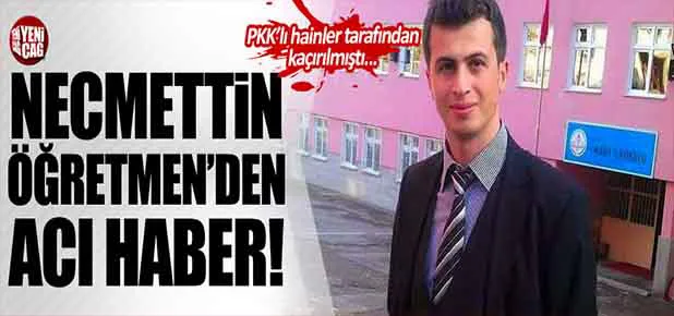 Cesedin PKK'lı teröristler tarafından kaçırılan öğretmen Necmettin Yılmaz’a ait olduğu kesinleşmiş oldu.