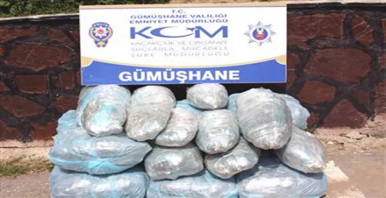 Gümüşhane Emniyet Müdürlüğü Kaçakçılık ve Organize Suçlarla Mücadele (KOM) Şube Müdürlüğü, hafta sonu yaptığı operasyonlarda 89 kilo kubar esrar ve 10 bin 580 paket kaçak sigara ele geçirdi. Bir ihbarı değerlendiren KOM ekipleri, Bağlarbaşı Mahallesinde şüphelendikleri bir otomobili durdurmak istedi. Ekiplerin dur uyarısına uymayan M.K.K. isimli şahıs Torul ilçesinde durduruldu. Operasyonda, otomobilin bagajı ve arka koltuklarında 21 paket halinde 89 kilogram kubar esrara el konuldu. Gözaltına alınan sürücü M.K.K’nın kubar esrarı İstanbul bölgesine götürdüğü öğrenildi.